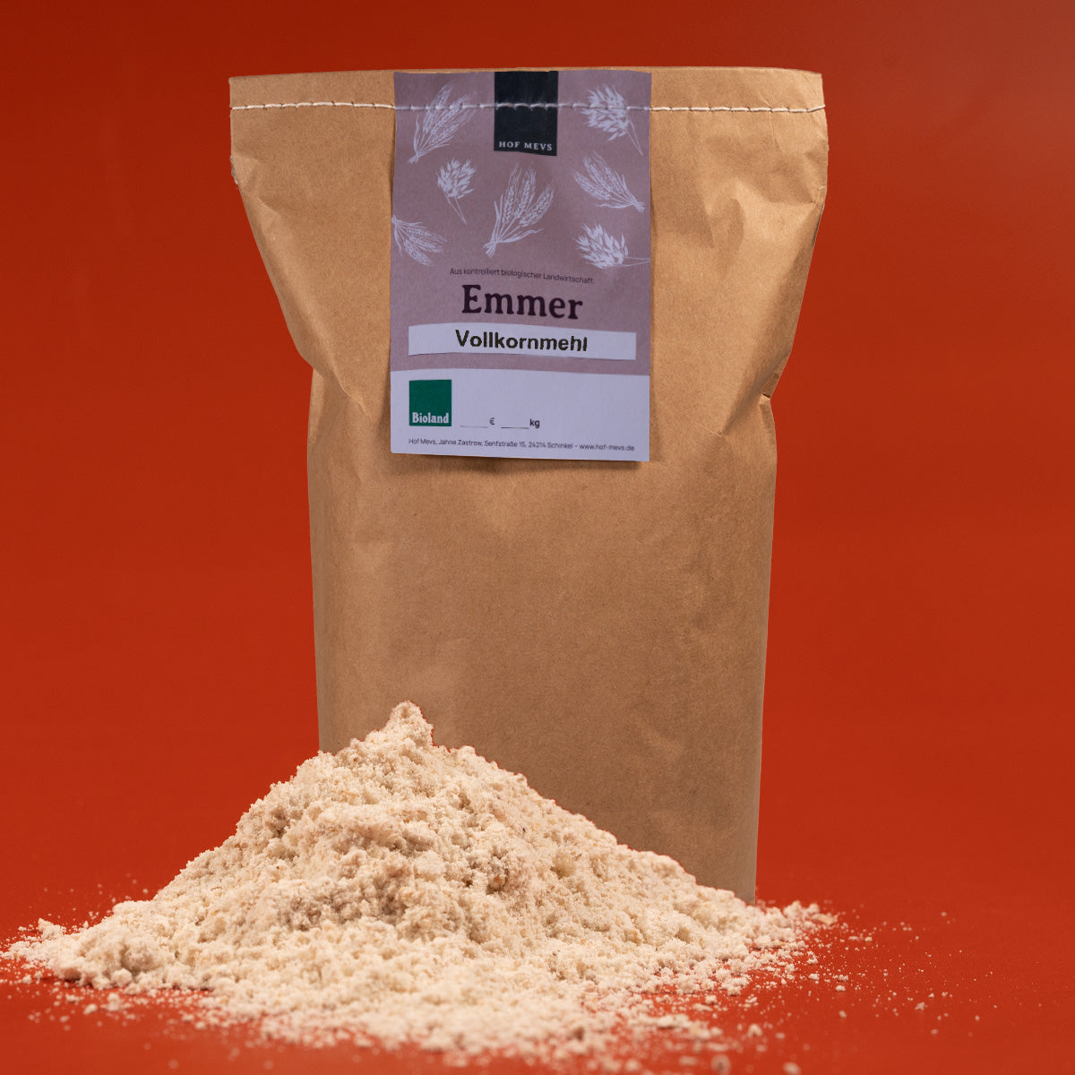 In der Verarbeitung bemerkt man den Unterschied enorm. Das Emmer-Vollkornmehl fühlt sich viel scharfkantiger an als Dinkel-Vollkornmehl und auch die Müller*innen Nase kann den Emmer-Geruch deutlich wahrnehmen.